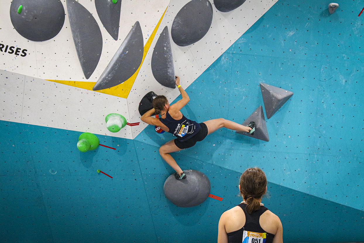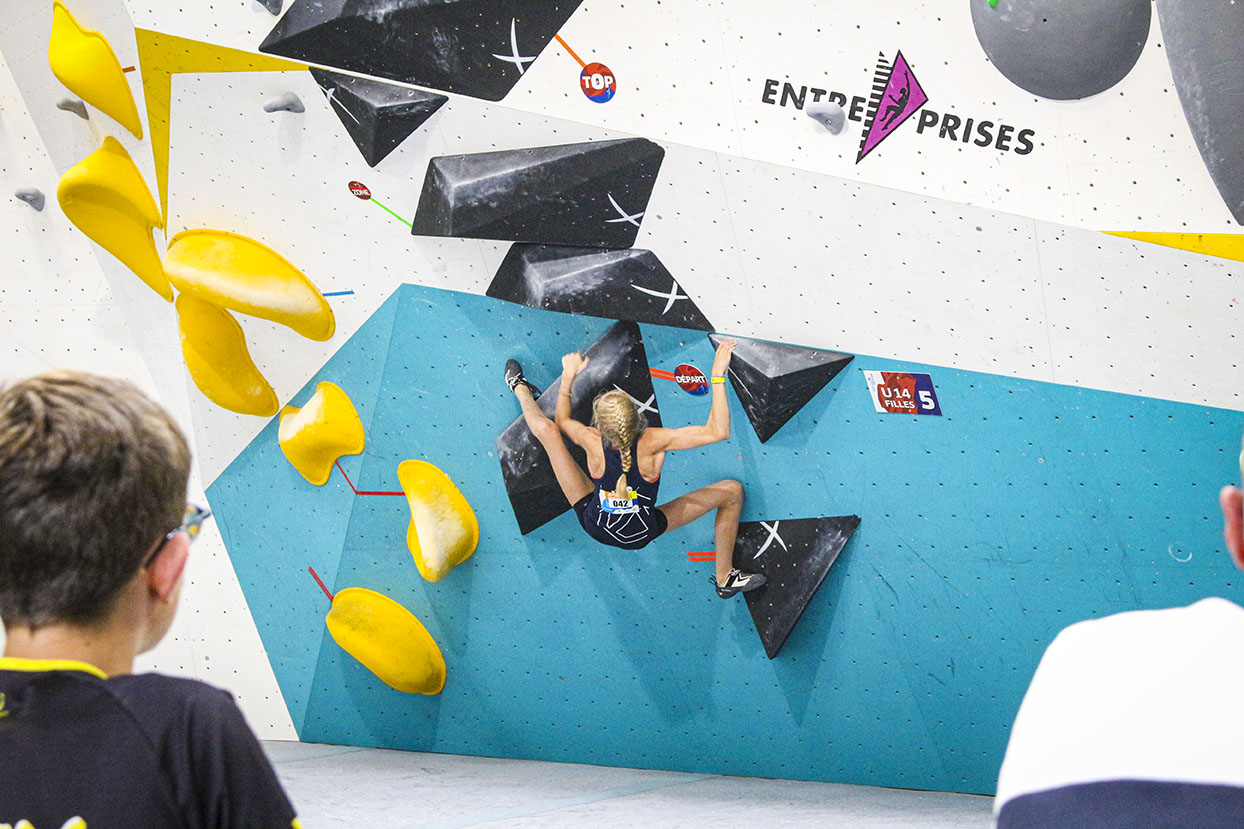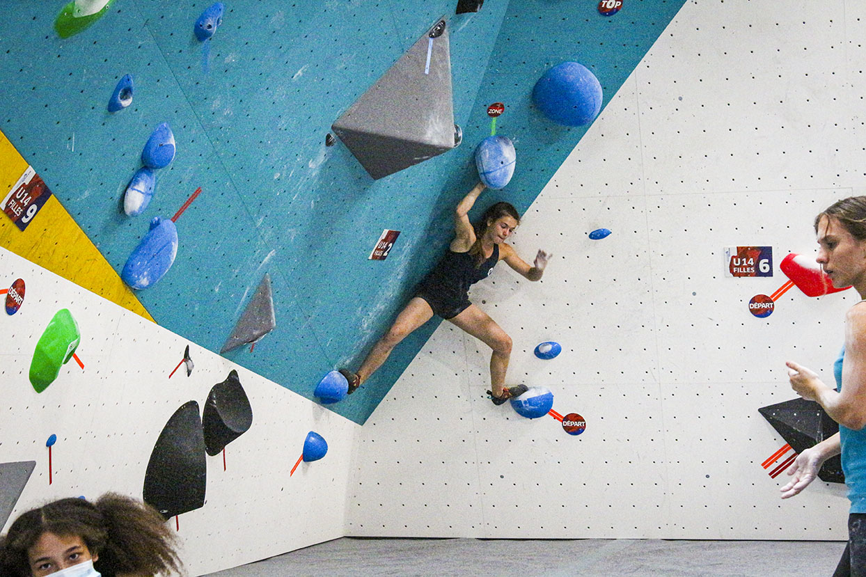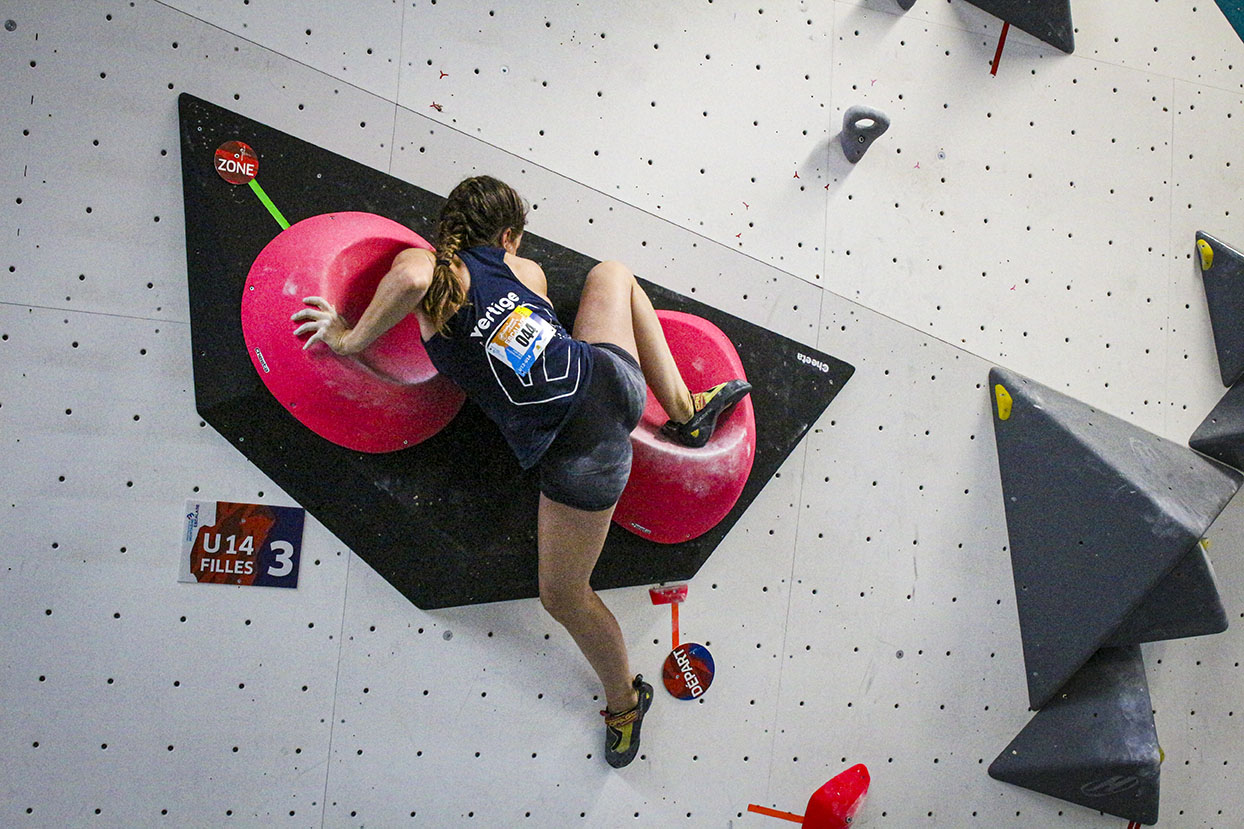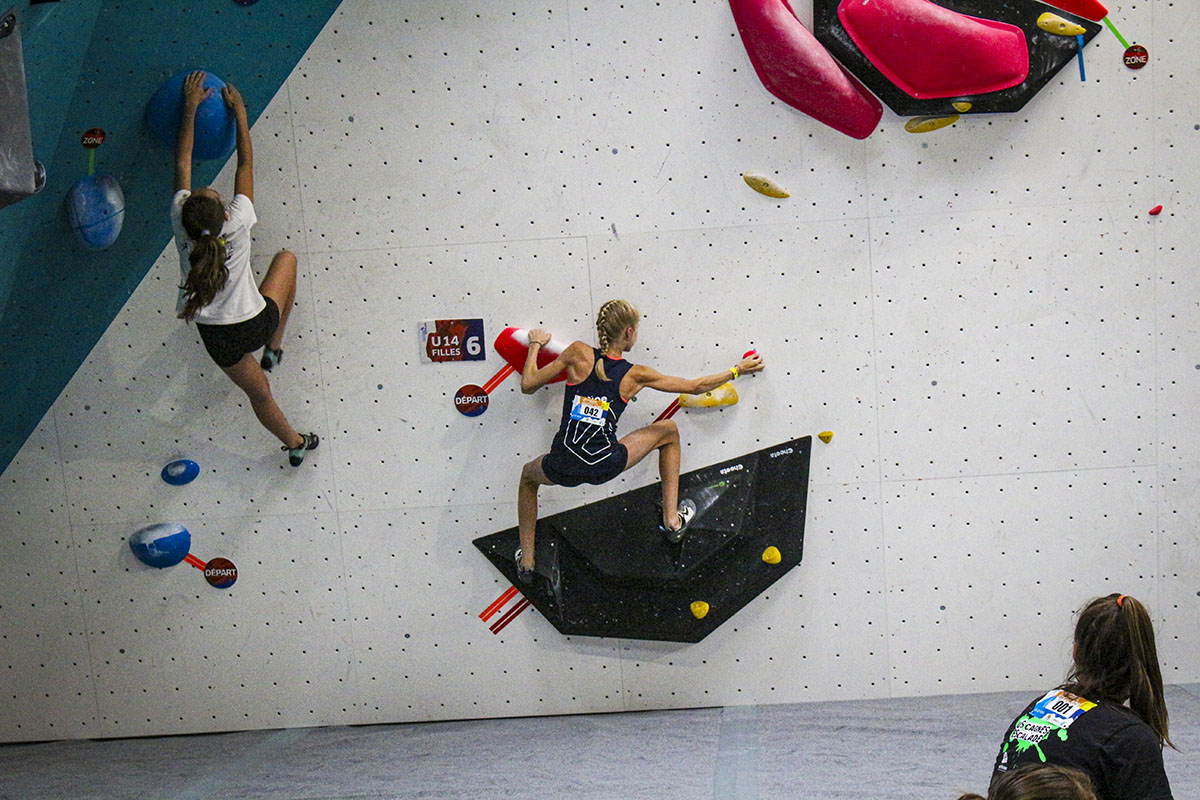 Côté grimpe le championnat U12-U14 c’est un combiné des 3 disciplines vitesse, bloc et difficulté, il faut donc gérer l’effort et le mental !