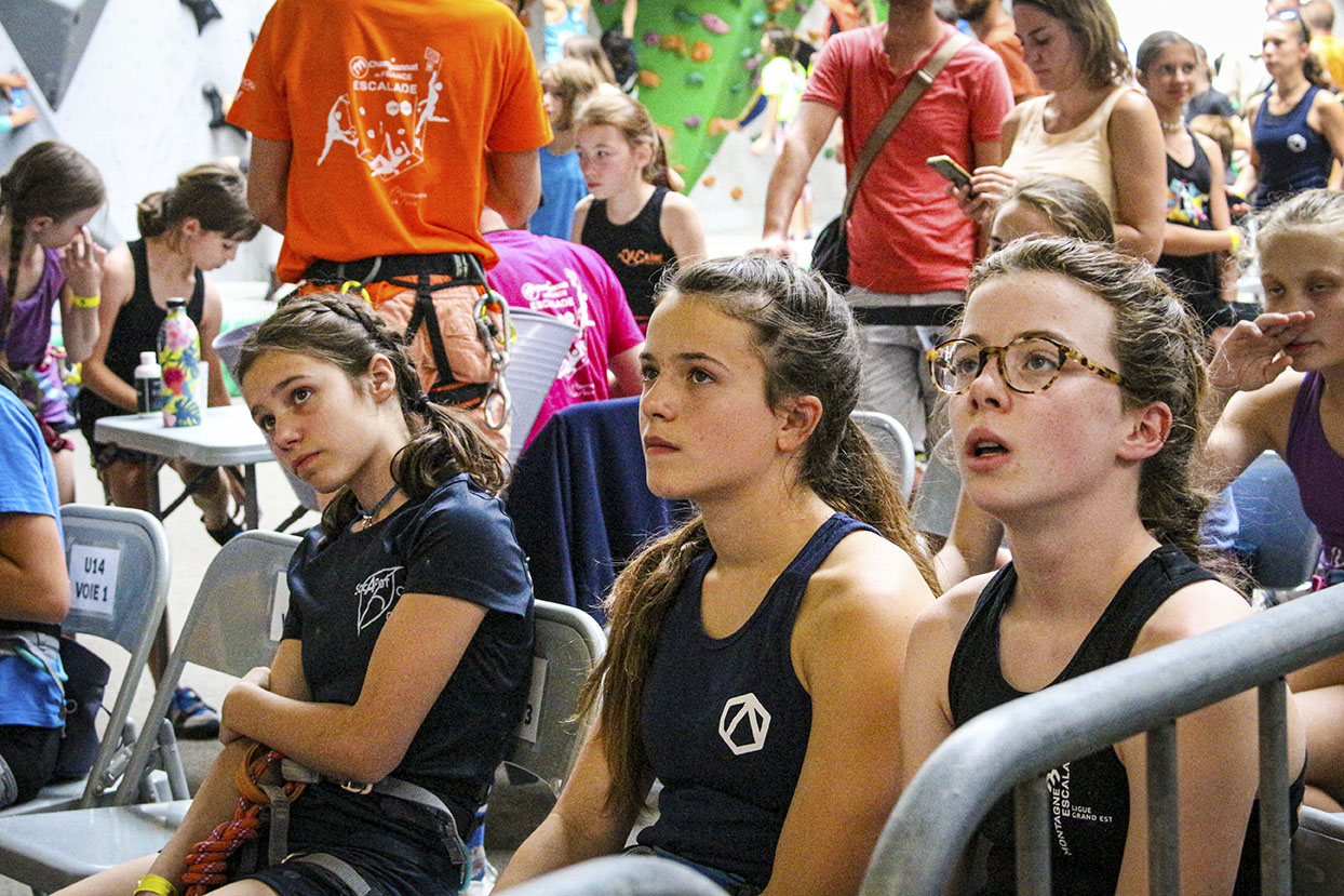 Deuxième jour, Quentin se remotive pour profiter des belles ouvertures en difficulté et prend la onzième place, Emma s’envole et prend la première place en vitesse, Marion et Valentine 5 ème et 22eme, puis respectivement 6eme ,8eme et 12eme en bloc.