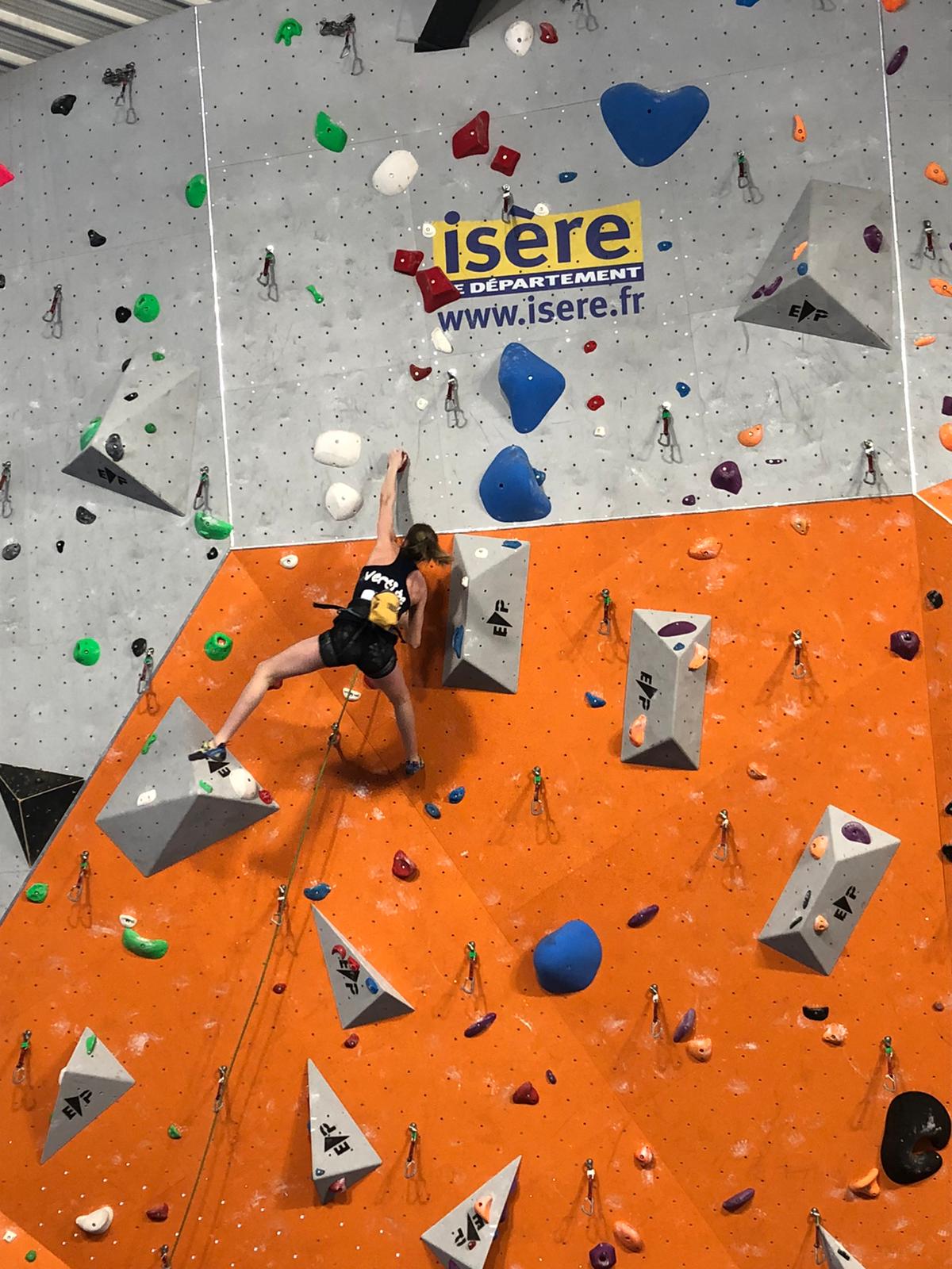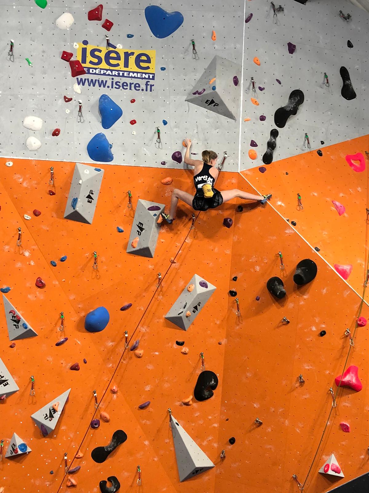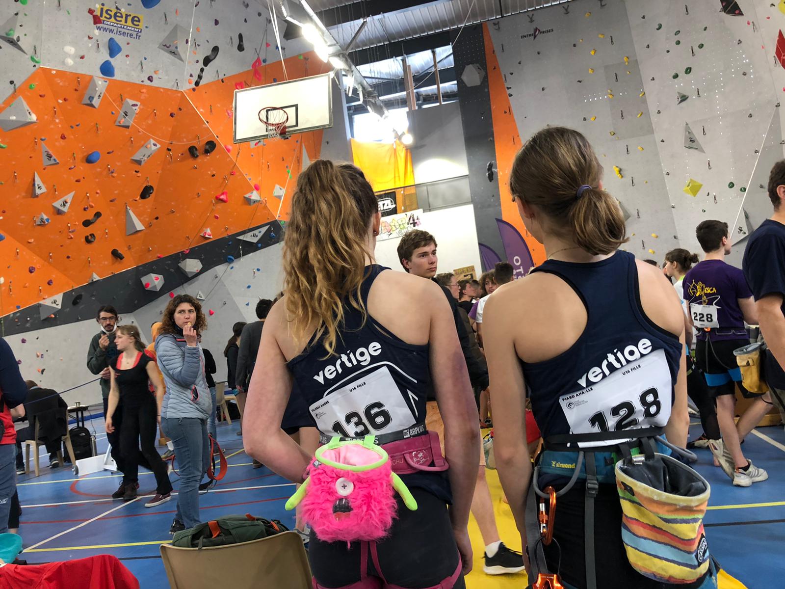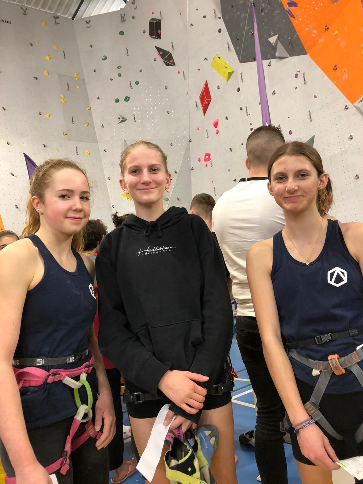 Arrive ensuite la petite équipe bien motivée des U16, avec Ambre, Anaëlle, Léanis et Antonin. Ils découvrent une salle où les masques ont disparu des visages, où la buvette est à nouveau présente… À leur tour de se lancer dans leurs 8 voies de difficulté allant de 5c à 7c, sur trois heures de temps. Avec 42 inscrites chez les U16F et 35 chez les U16H, l’heure était à la tactique… et à l’opportunisme lorsqu’il n’y avait personne dans une voie.