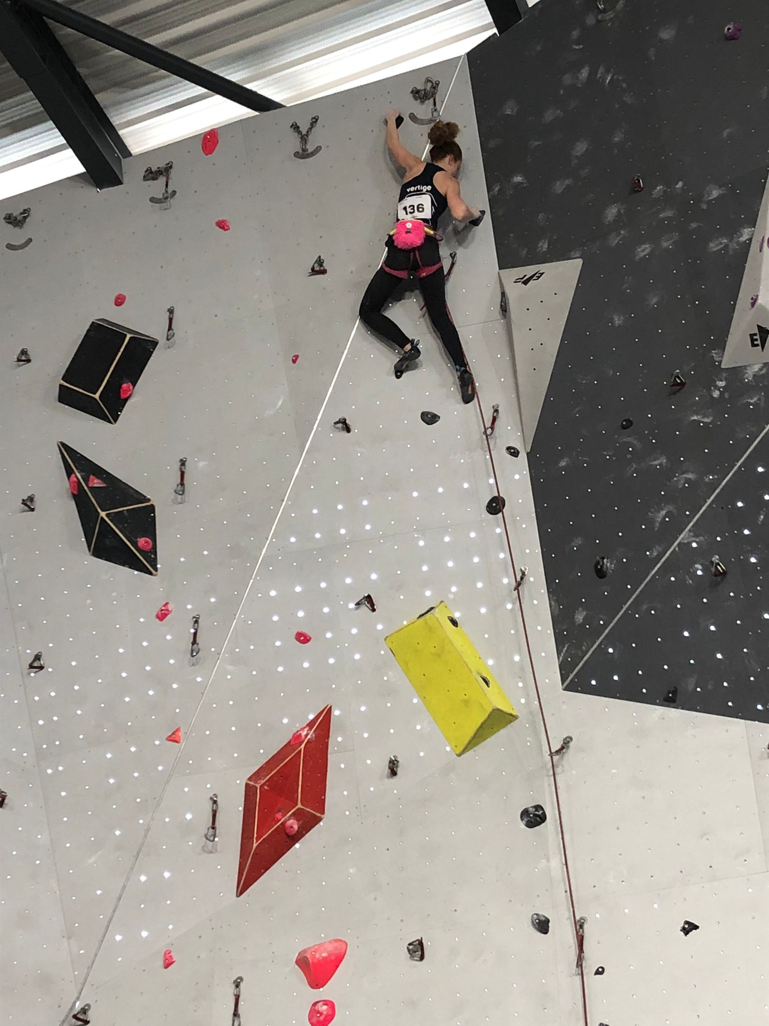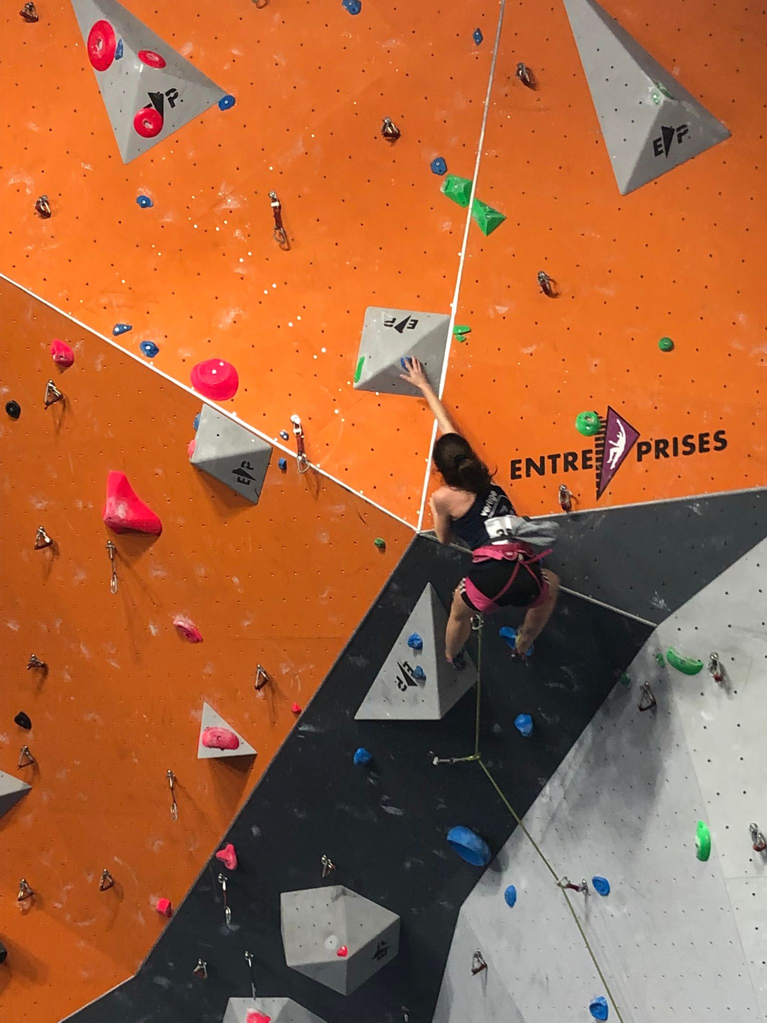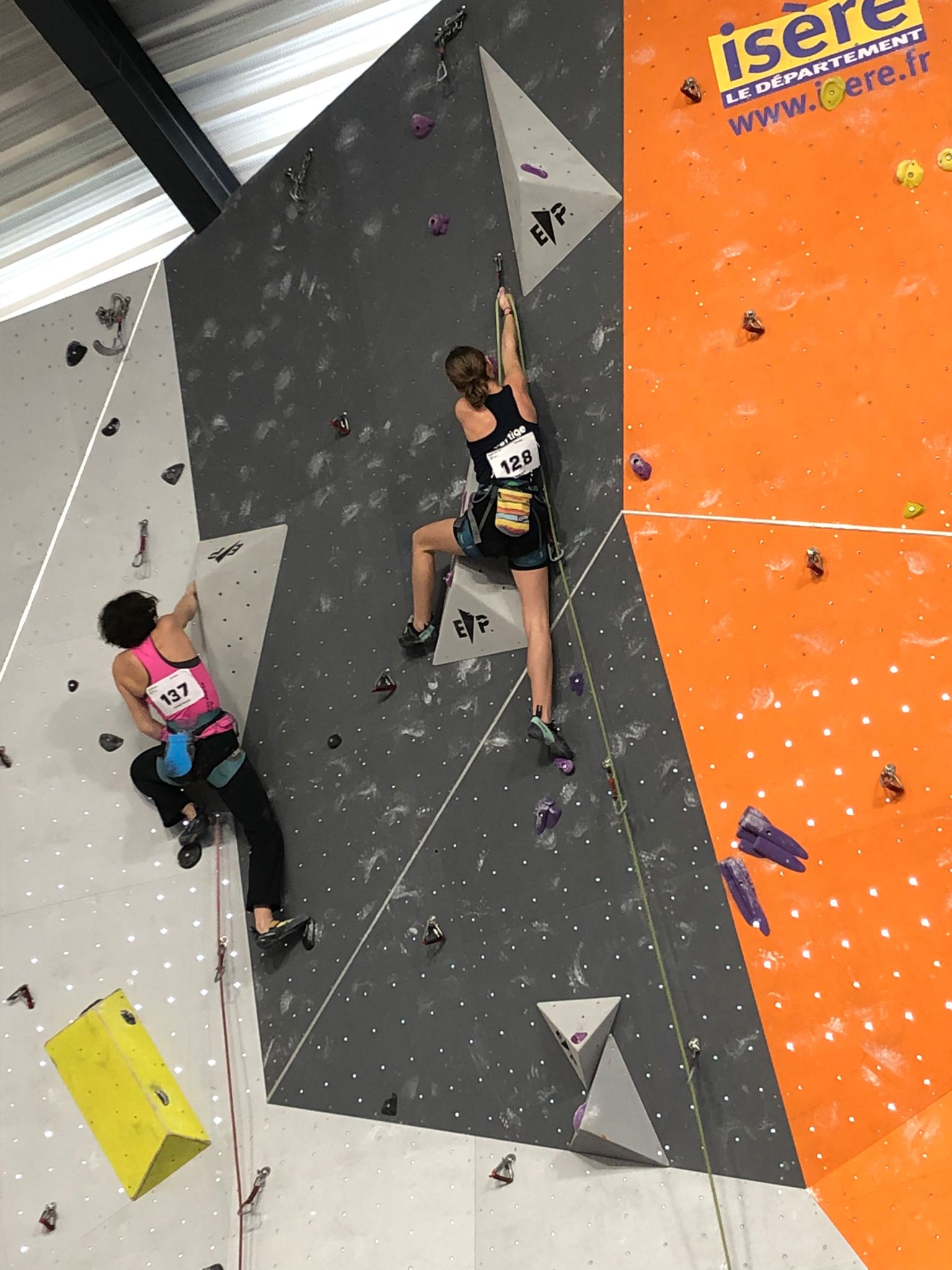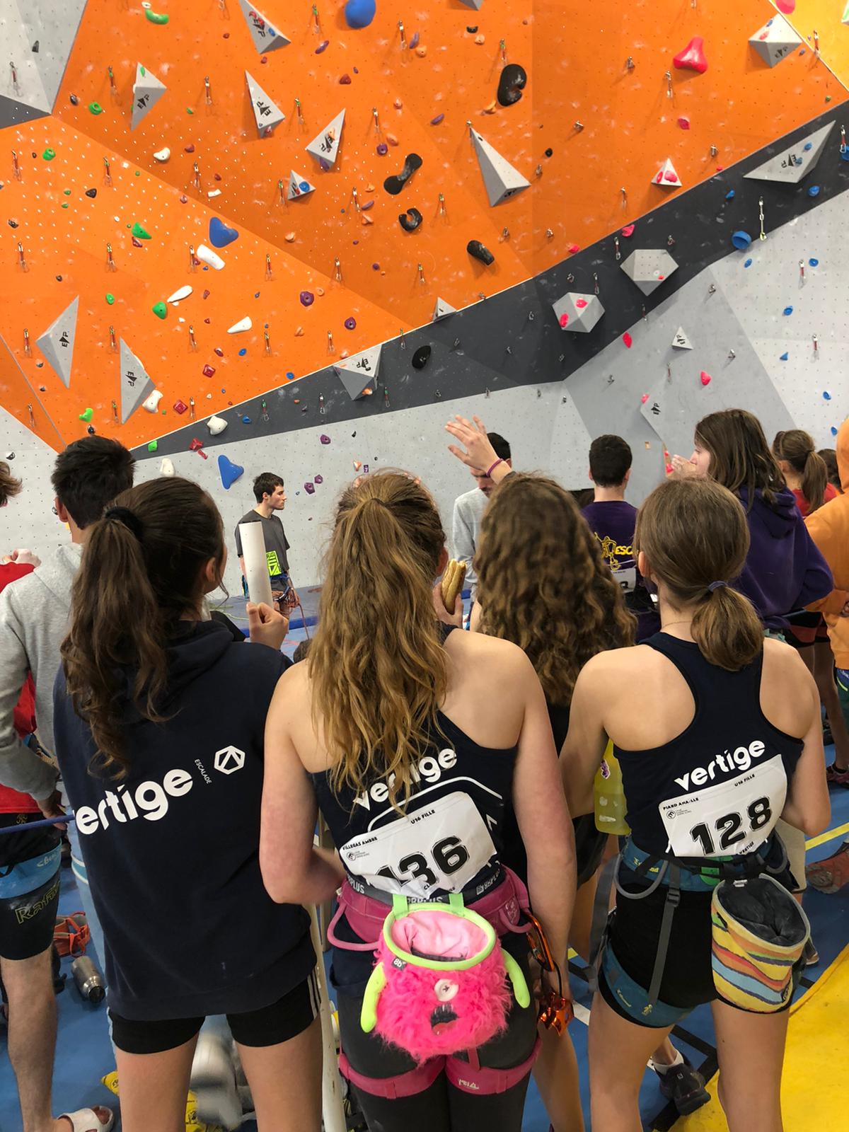 Arrive ensuite la petite équipe bien motivée des U16, avec Ambre, Anaëlle, Léanis et Antonin. Ils découvrent une salle où les masques ont disparu des visages, où la buvette est à nouveau présente… À leur tour de se lancer dans leurs 8 voies de difficulté allant de 5c à 7c, sur trois heures de temps. Avec 42 inscrites chez les U16F et 35 chez les U16H, l’heure était à la tactique… et à l’opportunisme lorsqu’il n’y avait personne dans une voie.